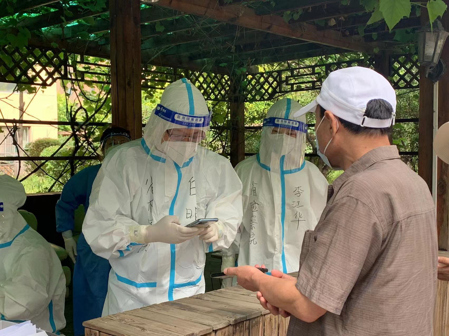 8月23日晚十一点,在接到社区疫情防控紧急求助电话后,支部闻令而动,支部书记迅速召集支部党员组成疫情防控执勤小组,投身防疫工作,全力协助完成核酸检测任务。8月24日凌晨五时,城市还在睡梦中,第十一检察部党支部四名党员已经奔赴不同防疫地点,帮助社区工作人员布置核酸采样点,并准时协助医护人员扫码进行核酸检测。他们身上的防护服包裹着的不仅是忙碌的汗水,更是不畏危险、勇往直前的勇气和战胜疫情的坚强力量。