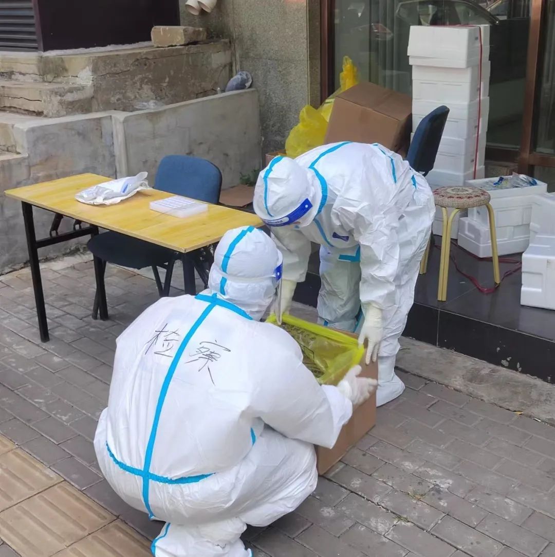 在给社区居民发放抗原试剂进行居家自测中,我俩反复地分类、确认后,将试剂交到每个居民手中。不少居民不知道试剂的作用和用法,我们就耐心地一一解释。烈日下,厚厚的防护服密不透风,反复说话导致口干舌燥,让人有虚脱的感觉,我俩互相鼓劲,一定要坚持下去!直到最后一个领取试剂的人离开……