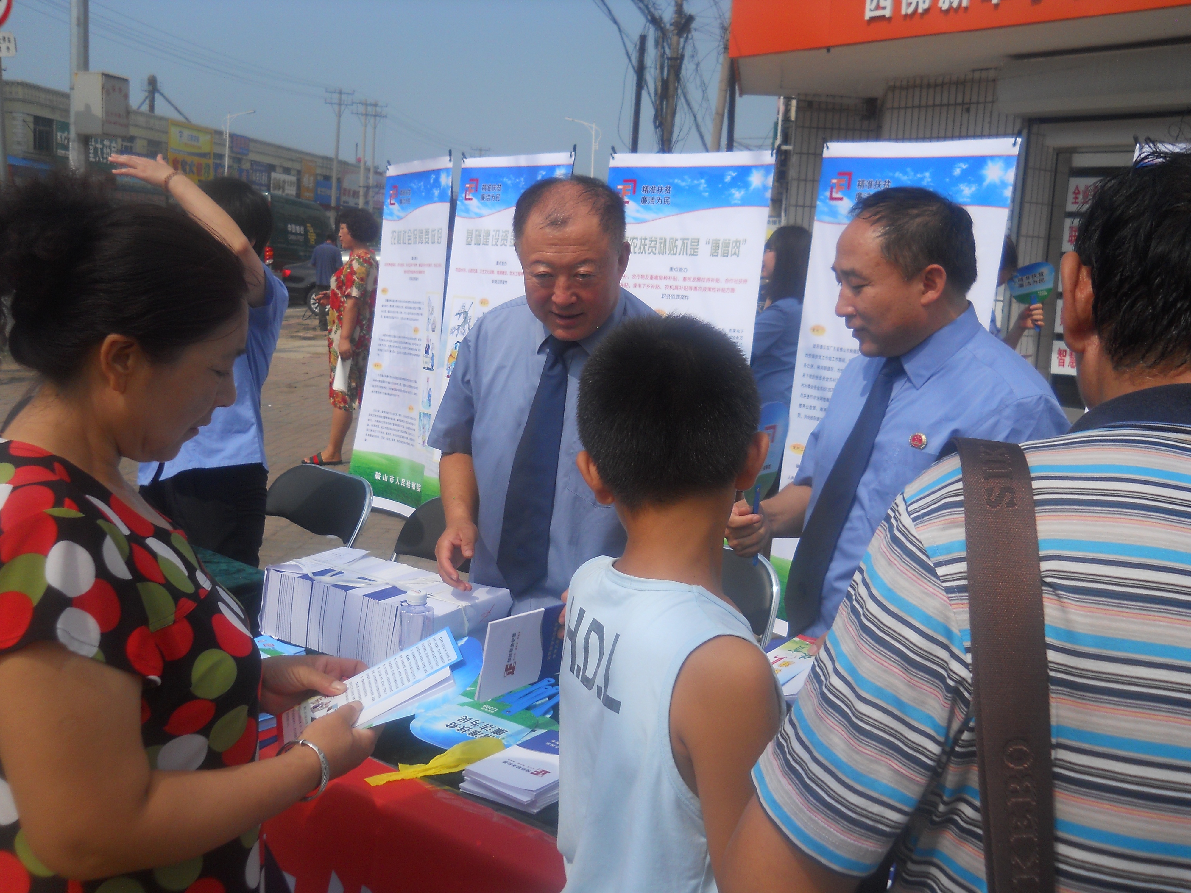 活动中,鞍山两级检察机关工作人员向参与活动的群众发放了自行编印的《预防职务犯罪宣传手册》、《惩治和预防扶贫领域职务犯罪宣传单》、《职务犯罪举报宣传卡》和印有“精准扶贫、廉洁为民”主体标识的宣传扇,并结合扶贫惠农领域职务犯罪案例展览图片开展以案释法工作,使基层群众在进一步了解国家扶贫政策、法律的同时,深切感受到检察机关坚决查办和预防扶贫领域职务犯罪的力度和决心,积极提升广大群众对检察工作的认知度和支持度。与此同时,鞍山检察机关深入开展送法下乡活动,市检察院精选扶贫惠农领域典型职务犯罪案例,制作了图文并茂的 《集中整治和加强预防扶贫惠农领域职务犯罪宣传挂图》,发放到全市85个乡镇、831个自然村及扶贫相关工作部门。鞍山两级院还将集中开展“预防扶贫惠农领域职务犯罪专题宣讲活动”,教育引导全市扶贫工作人员依法廉洁履职,鼓励广大基层群众依法进行监督,努力营造风清气正的扶贫开发环境,促进精准扶贫、阳光扶贫、廉洁扶贫,为我市打赢脱贫攻坚战提供有力的法治保障。