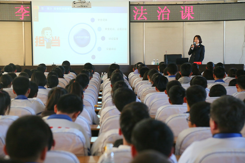 课堂上,李元以“检察官告诉你----尊法学法懂法守法”为主题,以检察院工作职能和检察官职责为切入点,详细介绍了法治功能作用及中国特色社会主义法治道路发展历程,并结合检察院办理的未成年人案件的真实案例,以互动提问的方式向同学们普及相关法律知识,教育启示同学们树立法治理念和法治思维,养成尊法、学法、懂法、守法的良好习惯,提高自我保护能力,带头做公平正义的践行者和捍卫者。