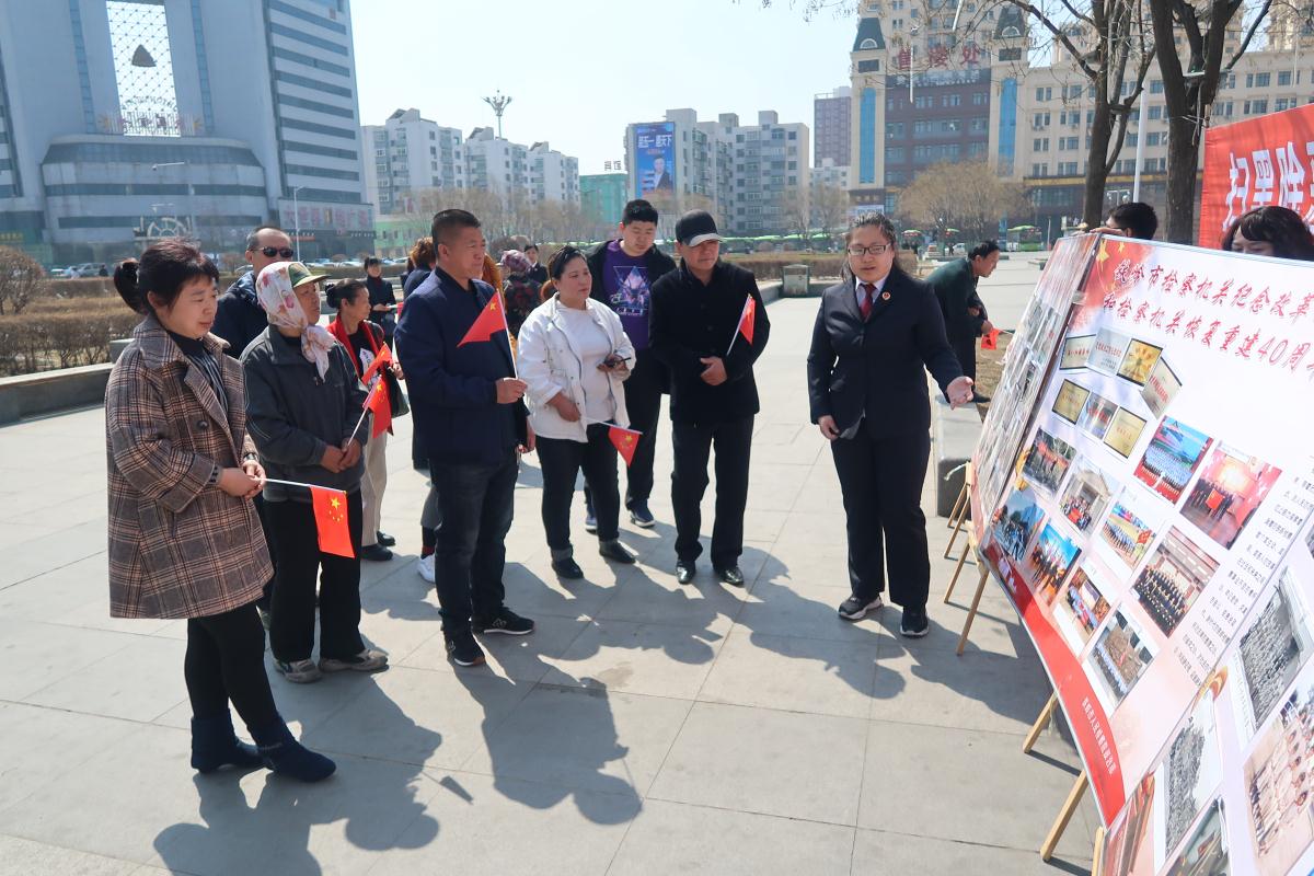 近日,铁岭市检察院组织办公室、侦监、公诉、未检、民行、控申、政治部七个部门到铁岭火车站广场开展“做优刑事检察做强民事检察做实行政检察做好公益诉讼”宣传活动。