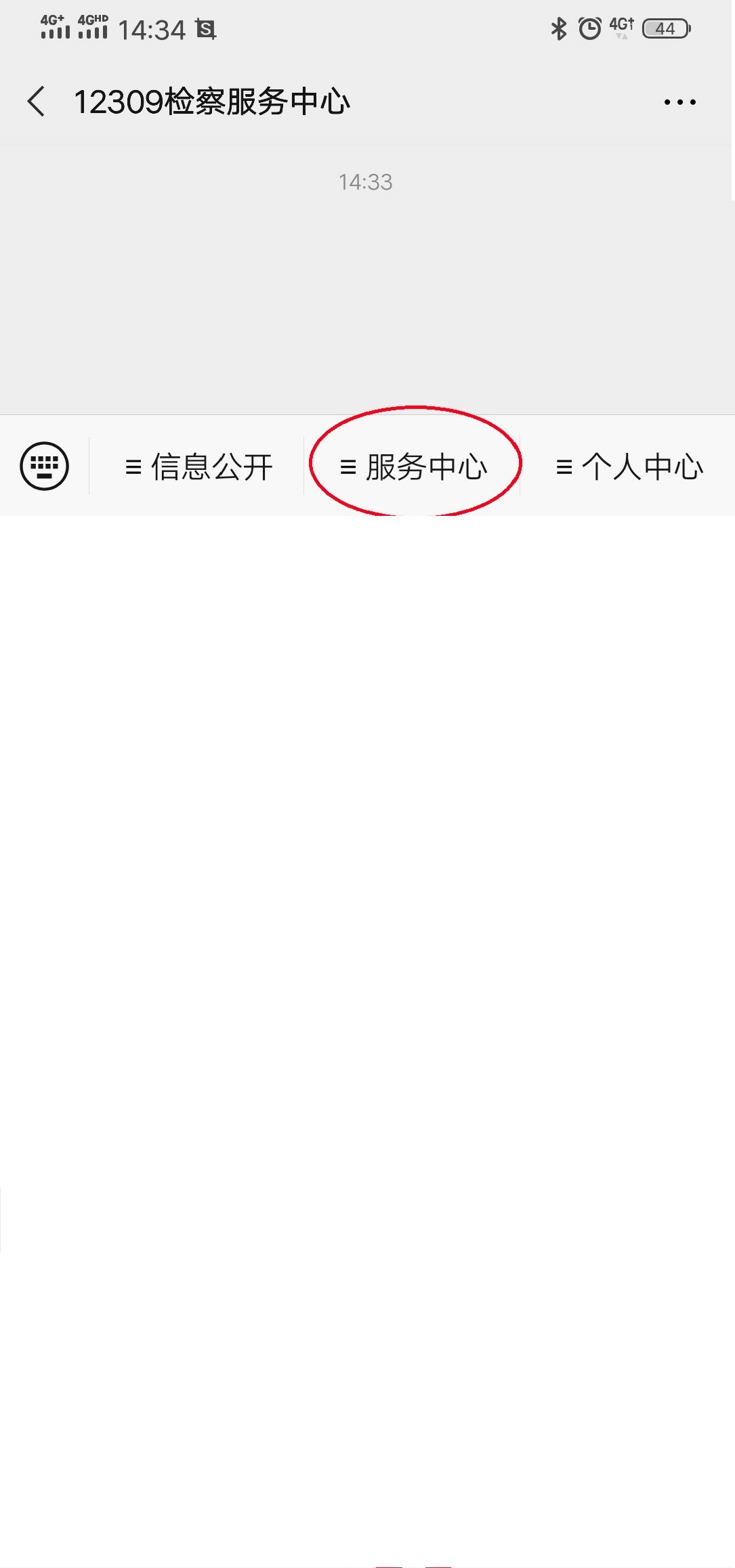 未注册用户要先注册账号,进入微信公众号后,点击下方“服务中心”,选择“律师服务”(如图2-1,2-2)。