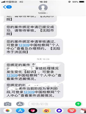 检察机关进行审核,通过审核后发送短信告知律师绑定成功,在程序性信息发生变化时会发送提醒(如图4-1)。