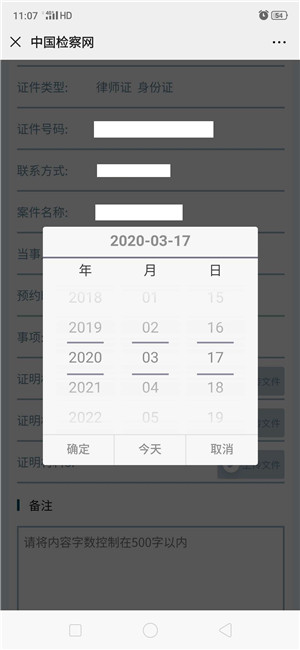 在已绑定案件中,选择要进行预约的案件,点击查看或预约,选择预约时间及事项(如图5-3、5-4)。
