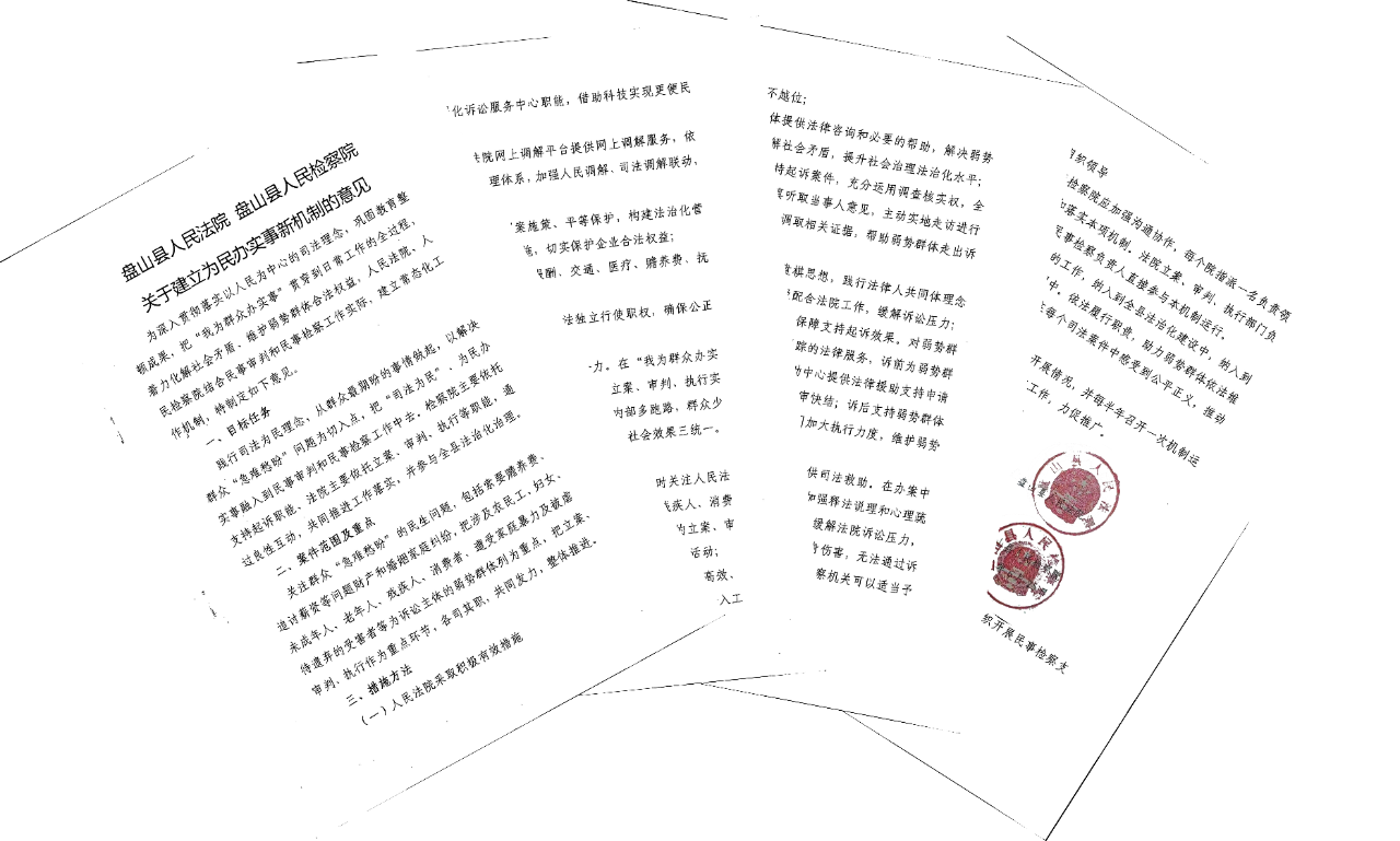 为深入贯彻落实以人民为中心的司法理念,巩固政法教育整顿成果,从群众最期盼的事情做起,以解决群众“急难愁盼”问题为切入点,把“我为群众办实事”贯穿到日常工作的全过程,着力化解社会矛盾、维护弱势群体合法权益,近日,盘山县检察院联合县法院,结合民事检察和民事审判工作实际,制定出台了《关于建立为民办实事新机制的意见》(后文称《意见》)。