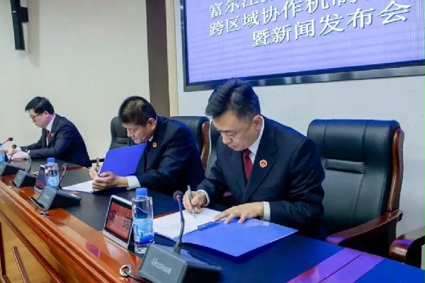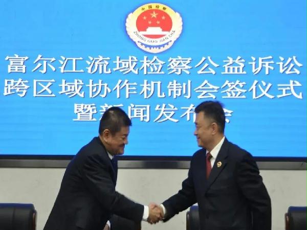 会签仪式后,双方联合召开新闻发布会,重点介绍了两地检察机关跨区域协作开展富尔江流域生态环境和资源保护公益司法的重要意义,以及为保障协作机制有效运行即将采取的具体措施和保护方法,并就相关问题回答了记者提问。