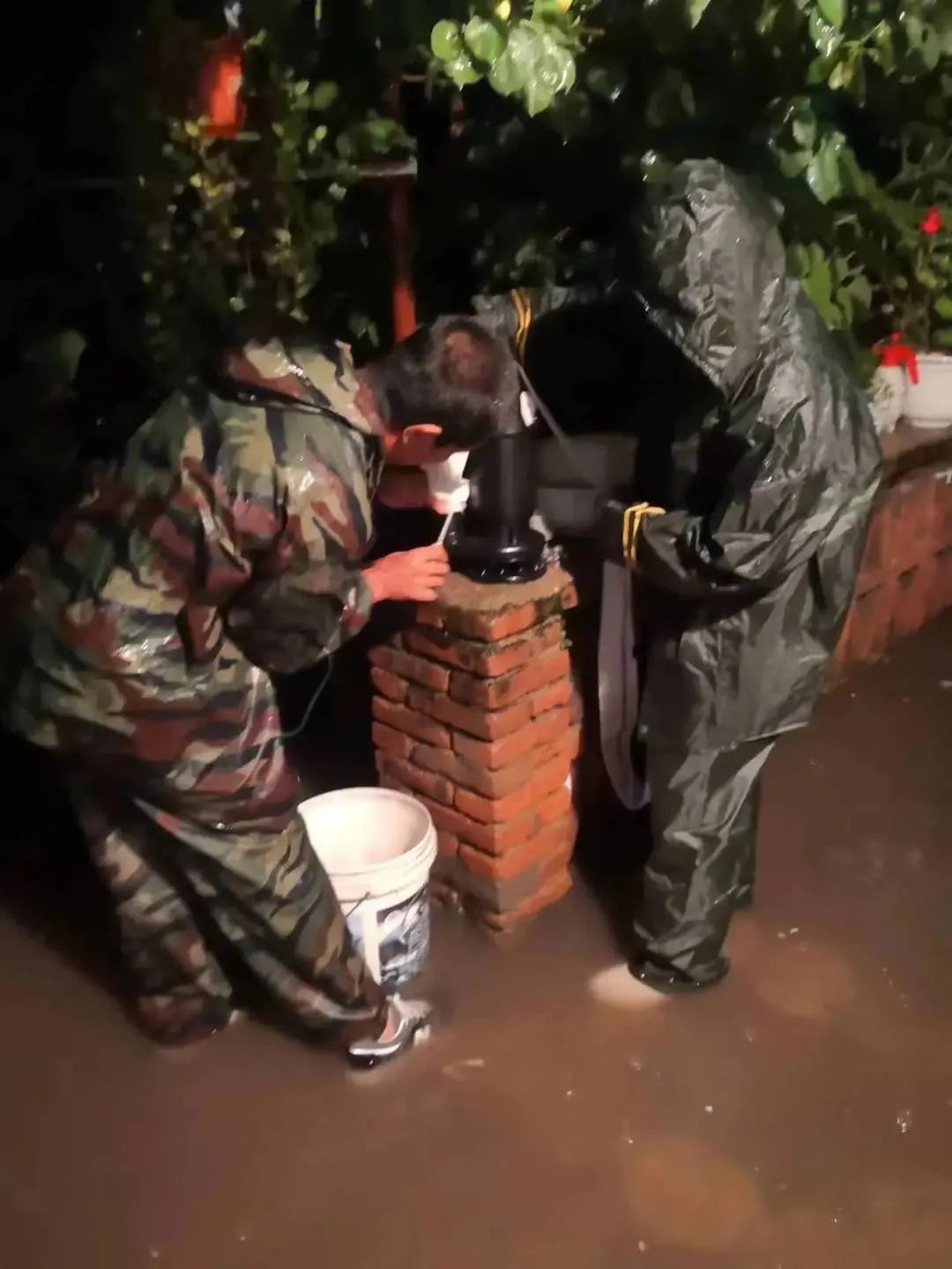 干警们受领任务后,立即冒雨多方联系筹集救援物资,第一时间奔赴防汛一线开展险情排查工作。经排查,干警们发现了一户居民家中内涝情况严重,考虑到持续的降雨可能会给受困家中的老两口带来不可预知的风险隐患,大家立即行动、连夜排水,奋战至凌晨1点,终于帮助受困居民排除了险情。
