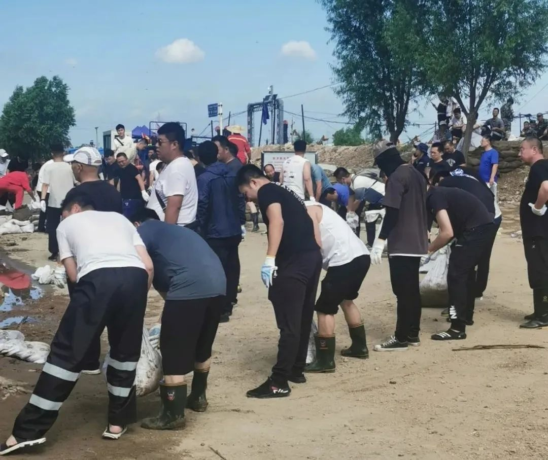 炎炎烈日下,干警们挥汗如雨但毫无怨言。针对有可能漫堤的关键地点,他们与防汛人员装填沙袋、接力搬运、搭防水布……一步步、一袋袋垒筑出4层厚、2米高的堤坝,筑牢防汛“安全线”。