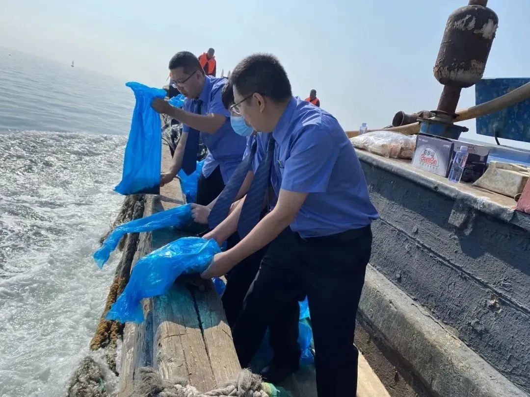 近日,庄河市石城乡青鱼坨海域海风习习、碧波荡漾,两艘渔船交错前行,船员水手奔波忙碌,庄河市海洋发展局、庄河市检察院联合组织的渔业苗种增殖放流活动正在进行,渔政工作人员、检察干警和船员们将数以万计的人工繁育三疣梭子蟹苗放流大海。围观的渔民们纷纷点赞。