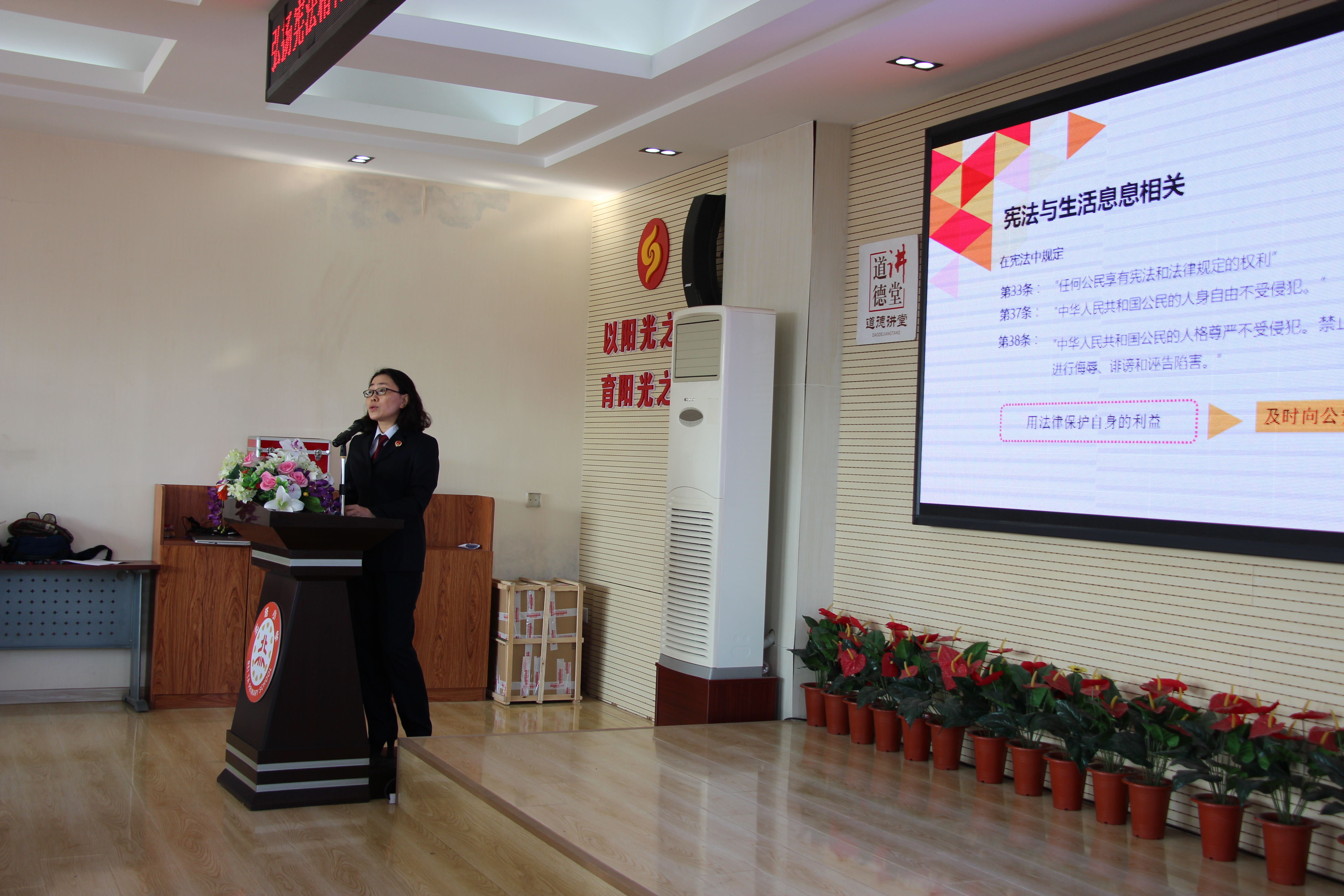 省自然资源厅副厅长首先为师生介绍了“学习宪法、尊重宪法、遵守宪法、维护宪法、运用宪法”的重要意义。