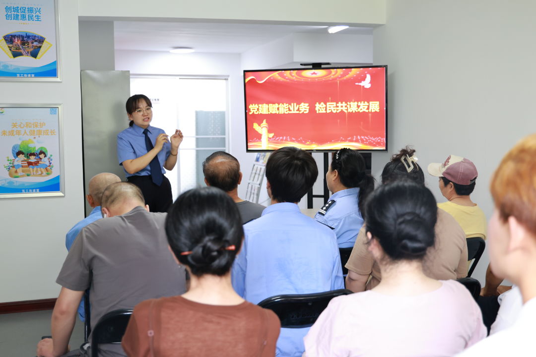 支部党员与社区群众就如何更好推进轻微刑事案件赔偿保证金提存工作、如何将检察机关服务与社区治理进一步融合等问题深入交流,为社区平安建设和提升服务水平注入检察力量。