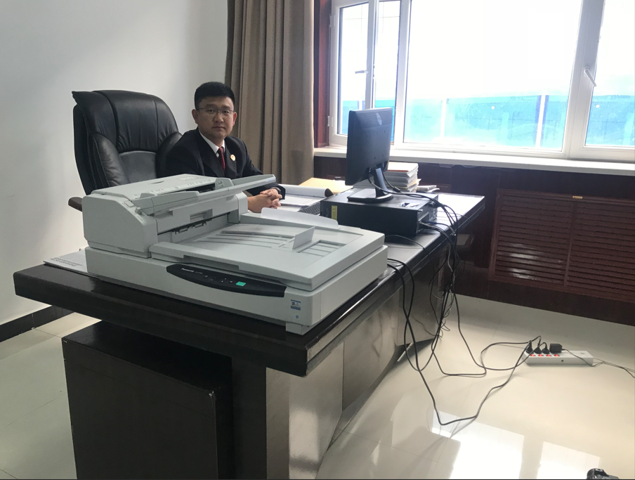 ▲由于塔城检察院案管大厅尚未建成,尹学智同志在临时办公室开展工作